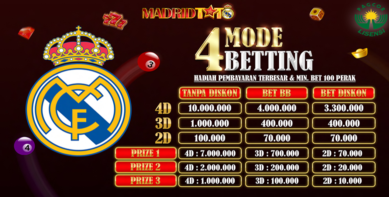 MADRIDTOTO merupakan nama bandar togel online terbaik dan Situs Slot Online terpercaya No.1 di Indonesia tahun ini. Telah memiliki puluhan ribu member togel online yang setia dan selalu bertambah setiap harinya. Banyak ulasan di internet mengenai Madrid Toto sebagai bandar judi togel online yang tidak membatasi line bettingan, sehingga cocok untuk bandar darat, bandar SGP dan bandar HK di Indonesia. Untuk Anda semua yang mungkin baru kali ini mengunjungi situs kami, tak perlu takut tak perlu ragu untuk segera bergabung sebagai partner atau sebagai member bandar togel online terpercaya Madrid Toto.